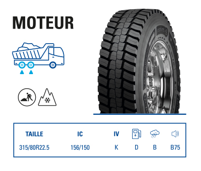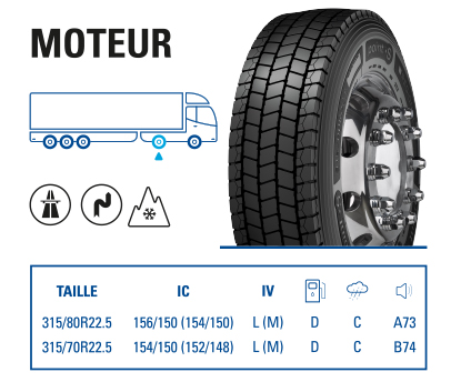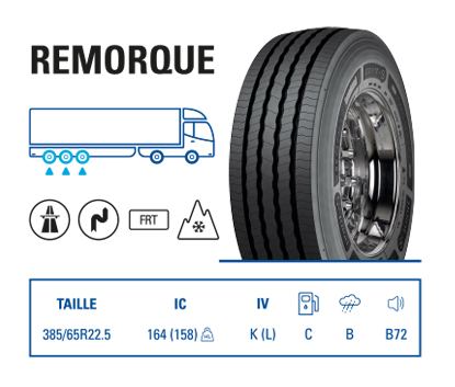 déchirures. - Indice de charge 164 : 10 tonnes par essieu.