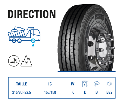 Le nouveau pneu Point S Regional Haul offre une large gamme d’applications, son marquage 3PMSF (Three Peak Mountain Snow Flake) et sa robustesse accrue en font un produit à la pointe de la technologie.